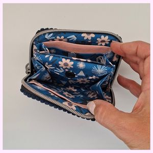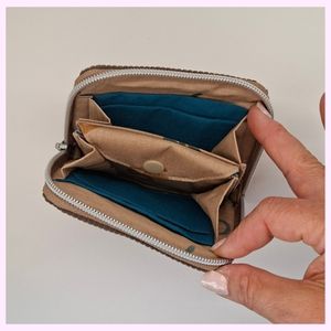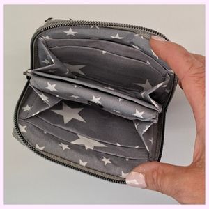 das Platzwunder! schön grosses Portmonnaie für Platz bis 12 Karten. Zwei Reissverschlussfächer Die Nötli können ganz hineingesteckt werden. Es hat sogar noch das Smartphone Platz.